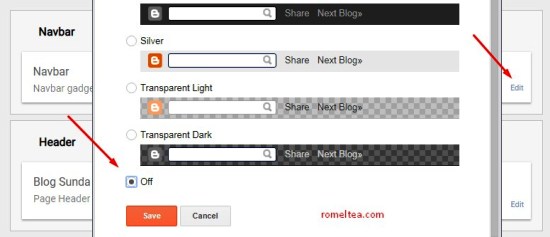 1. Nonaktifkan widget navbar dengan cara klik Layout > klik Edit Navbar