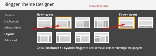 Untuk Layout, pilih yang dua kolom dan satu footer.