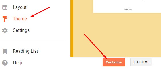 3. Klik Tema > Klik Customize untuk masuk ke Blogger Theme Designer.
