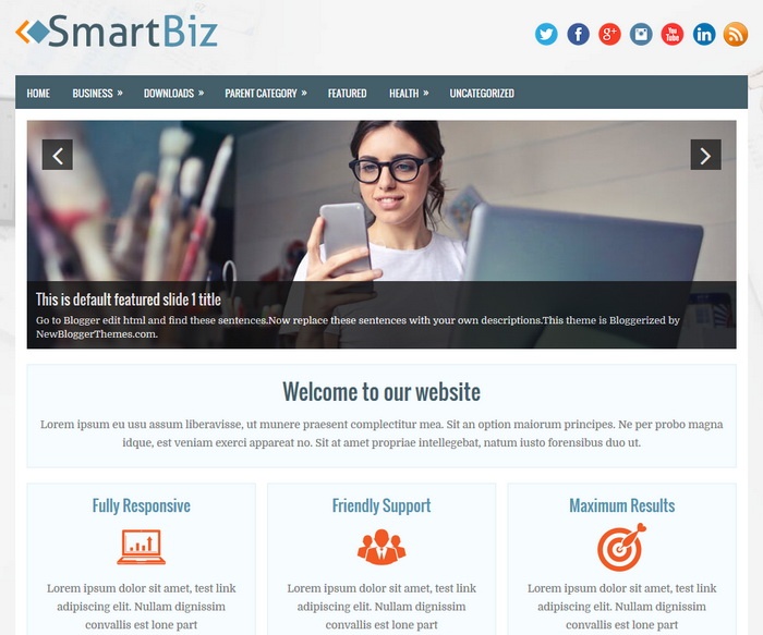 1. Download template yang dikehendaki. Cari yang simple, seo friendly, dan fast loading. Misalnya template SmartBiz yang desainnya jadi ilustrasi di atas.