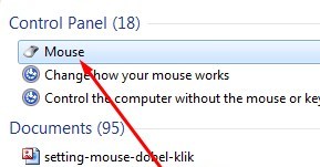 Lakukan setting di Mouse Properties dengan cara klik tombol Start Windows di sudut kiri layar komputer Anda > ketik mouse di kolom Search programs and file > klik mouse!