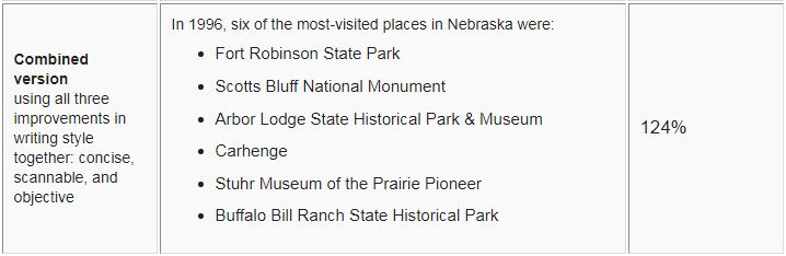 Tuliskan poin-poin penting dalam daftar bullet atau nomor (numbered list). Dalam studi NN Group, bulleted & numbered list memiliki skor tingkat keterbacaan hingga 124 persen.