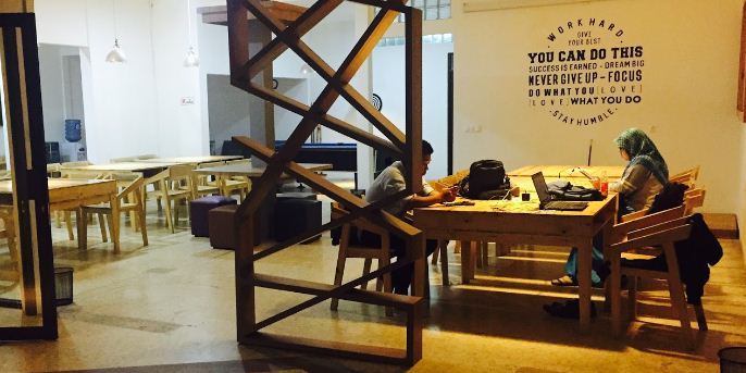Co-working space di kota Bandung ini berlokasi di Jln Raden Patah No. 28, Dago, Bandung, dengan harga mulai dari Rp 400.000 per bulan.