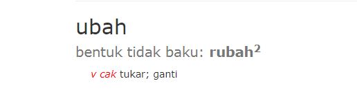 Rubah itu binatang jenis anjing, bermoncong panjang, makanannya daging, ikan, dan sebagainya. Ubah artinya tukar atau ganti (mengubah = menukar, mengganti).