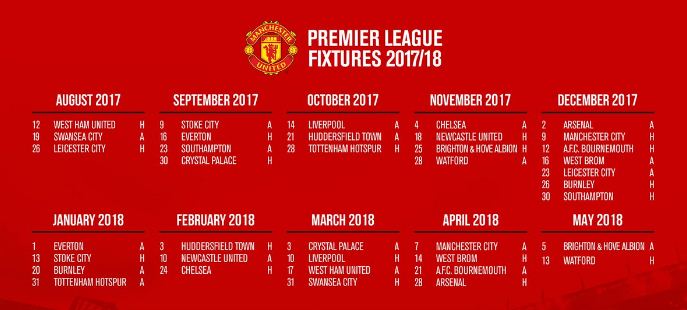 JADWAL PERTANDINGAN MU DI LIGA INGGRIS 2017-2018