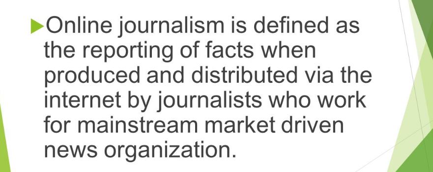 Jurnalisme online didefinisikan sebagai pelaporan fakta yang diproduksi dan didistribusikan melalui internet.