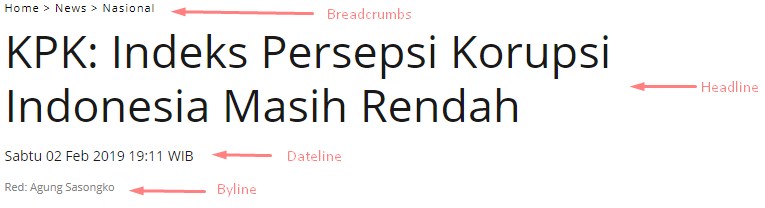 Elemen yang ada di bagian atas sebuah berita atau di sekitar judul.