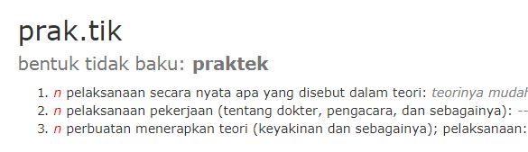 Lalu kita pun mengetikkan kata “praktik”, maka yang keluar: