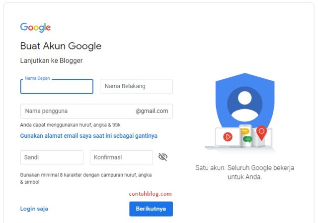 Jika Anda ingin menggunakan email lain untuk blog, atau belum memiliki email, maka sebelum masuk buatlah dulu sebuah akun email Google.