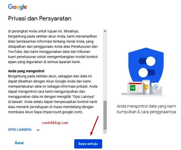 Akan terbuka halaman Privasi dan Persyaratan. Scroll ke bawah, lalu klik Setuju.