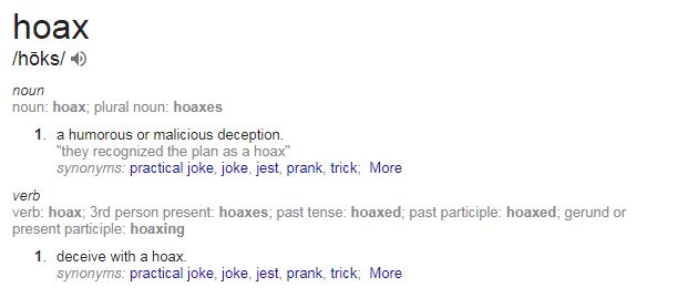 Secara bahasa hoax (synonyms: practical joke, joke, jest, prank, trick) adalah lelucon, cerita bohong, kenakalan, olokan, membohongi, menipu, mempermainkan, memperdaya, dan memperdayakan.