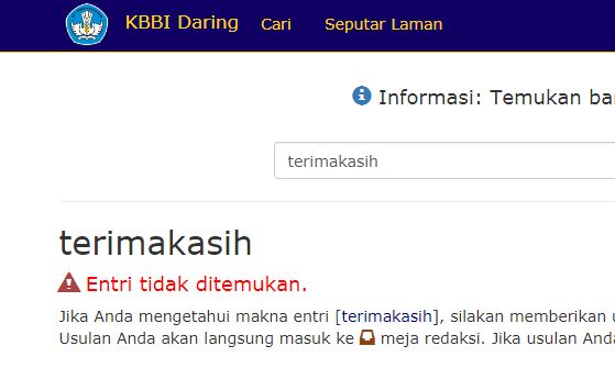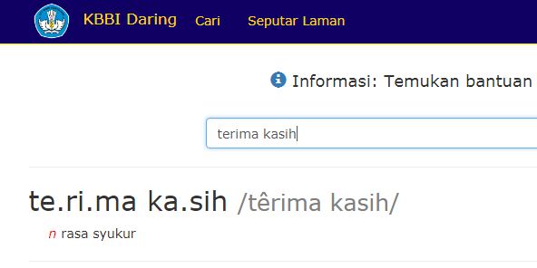Jika kita mencari kata terimakasih (disatukan) dalam Kamus Besar Bahasa Indonesia (KBBI), maka hasilnya: