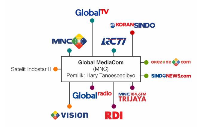Pemilik: Hary Tanoesoedibyo. Media Nusantara Citra (MNC) Group ini terdiri dari Global TV (GTV), RCTI, MNC TV, Koran Sindo, Okezone.com, Sindonews.com, Satelit Indostar II, Global Radio, MNC Trijaya Radio, Vision, dan Radio Dangdut Indonesia (RDI)