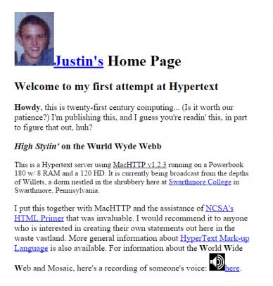 Swarthmore student Justin Hall creates first blog ever, Links.net.