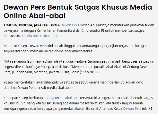 - Judul: Dewan Pers Bentuk Satgas Khusus Media Online Abal-Abal