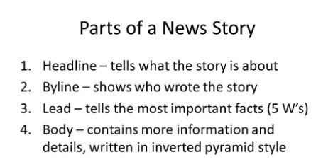 Biasanya, sebuah berita terdiri dari lead (teras) dan body (tubuh/badan) berita. Dalam sebuah berita, teras berita adalah bagian yang paling penting.