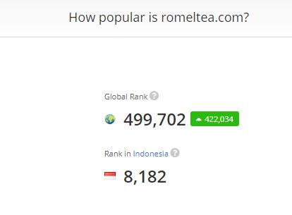 Bagaimana dengan blog saya ini, romeltea.com, ada di peringkat berapa? Saya cek, ini dia datanya per 23/11/2017.